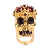 Details: Gold-Tone Ring / Faceted Red Crystal Embellishments Throughout