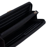Details: Black Quilted Leather / Gold-Tone Hardware / Logo at Front / Leather Interior Lining / 3 Compartments, One with Zip Closure / 2-Bill Compartments / 8-Card Slots / Zip-Around Closure