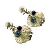 Description: Authentic Pre-Owned Chanel CC Leaf Logo Stud Earrings