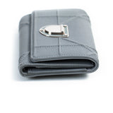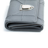 Details: Grey Cannage Calfskin Leather / Silver Hardware / Zipper Pocket at Back / Leather Lining / One Bill Compartment / 8 Card Slots / Snap Closure