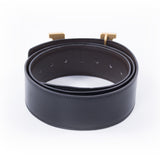 Details: Reversible Black and Dark Brown Leather / Gold-Tone Hardware / Large H Constance Logo Buckle / Peg-In Holes Closure