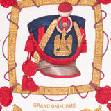 Details: White-Yellow-Red Printed Silk Scarf / Square Shaped / Motif Grand Uniform