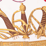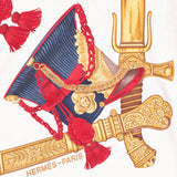 Description: Authentic Hermes White Military Theme Printed Silk Scarf