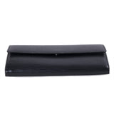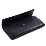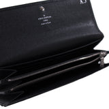 Details: Black Epi Leather / Silver-Hardware / 2 Bill Compartments / Zipper Pocket / 4 Card Slots at Front and 6 inside / Push Button Closure