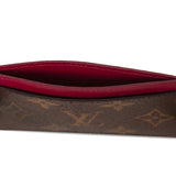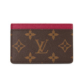 Details: Brown Monogram Coated Canvas / Raspberry Taiga Leather Trim / 3 Card Slots