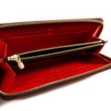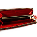 Details: Brown Monogram Coated Canvas / Red Leather Trimming / Flower Embellishment / Eight Card Slots / Zipper Pocket / Bill ID and Notes Compartment / Zipper Closure