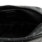 Details: Black and Grey Coated Canvas / Black Metallic Hardware / Black Leather Trim and Lining / Zip Closure / Dual Flat Pockets / Elastic Straps / Dual Zipper Closure