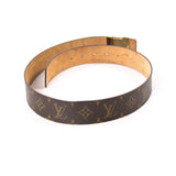 Details: Brown and Tan Monogram Coated Canvas / Gold-Tone Buckle / L.V Initials Buckles / Peg-In Hole