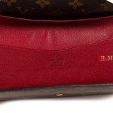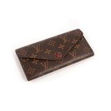 Details: Brown Monogram and Red Coated Canvas / Leather Trimming / Four Card Slots / Removable Zip Pocket / Bill ID and Notes Compartment / Stud Closure at Front