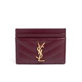 Details: Burgundy Grained Leather / Gold Tone YSL Designer Logo Embellishment at Front Face / Dual Card Slots at Front and Back / Single Compartment in the Middle