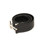 Details: Black Leather / Silver-Tone Hardware / Logo Buckle / Peg-in-Hole Closure