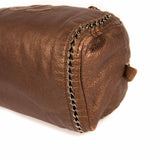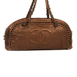 Details: Dark Bronze Structured Leather / Silver-Tone Hardware / Braided Leather and Chain Shoulder Strap / Tonal Stitching / Logo At Front / Chain Link Accent at Front and Back / Beige Leather Interior Lining / Three Pockets at Interior Walls, One With Zip Closure / Zipper Closure at Top