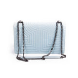 Details: Light Blue Aged Calfskin Leather / Black-Tone Hardware / Chain-Link Shoulder Strap with Leather Pad / Grey Fabric Lining / Dual Compartments with Zipper Pocket at Inside / Turn Lock Closure at Front Flap.
