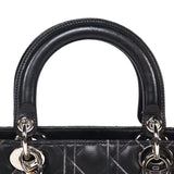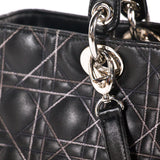 Details: Black Cannage Quilted Leather / Silver-Tone Hardware / Dual Rolled Handles / Detachable Shoulder Strap / Dior Logo Letters Charm At Front / Protective Studs At Base / Black Diorissimo Canvas Lining / Zip Pocket At Interior Wall / Zip Closure At Top