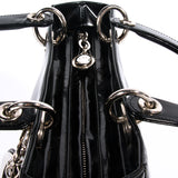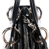Details: Black Patent Leather / Dual Rolled Handles / Detachable Shoulder Strap / Silver-Tone Hardware / Red Patterned Interior Woven Lining / Single Zip Pocket At Interior Wall / Zip Closure At Top