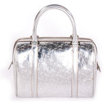 Details: Metallic Silver Leather / Silver-Tone Hardware / Dual Rolled Handles / Beige Woven Interior Lining / Dual Flat Pockets At Interior / Zip Pocket At Interior Wall / Zip Closure