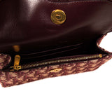 Details: Burgundy Dior Oblique Jacquard / Brass Hardware / Burgundy Leather Lining / Detachable and Adjustable Leather Strap / D Charm at Front Face / One Compartment with Zipper Pocket and 2 Card Slot / Magnetic Snap At Front