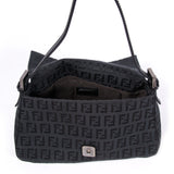 Details: Black Zucca Canvas Handle Bag / Gold-Tone Hardware / Black Leather Adjustable Shoulder Strap / Brown Woven Interior Lining / Single Pocket At Interior Wall / Snap Closure At Front