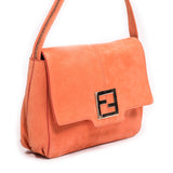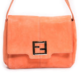 Details: Orange Suede / Shoulder Bag / Silver-Tone Hardware / Single Flat Shoulder Strap With Metal Embellishment / Grey Woven Lining / Single Pocket At Interior Wall With Zip Closure / Flap Magnetic Snap Closure At Front / Fendi F Logo At Front