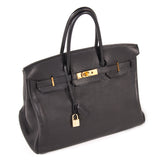Description: Authentic Birkin 35 cm Black Taurillon Leather
