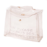 Details: Limited Edition / Transparent PVC / Gold-Tone Hardware / Single Flat Top Handle / 'Souvenir de l'Exposition 1997 Hermes' Print At Flap /'Un Voyage Au Pays Des Merveilles' Motif / Front Flap Turn Lock Closure