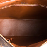 Details: Brown and Tan Monogram Canvas / Tan Vachetta Leather Trim / Adjustable Shoulder Strap / Brass Gold Hardware / Brown Interior Taiga Leather / Zipper Pocket and Phone Pocket at Interior Wall / Top Zip Closure