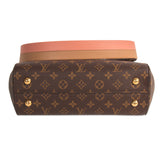 Details: Monogram Coated Canvas / Tan Leather Trim / Single Rolled Handle / Detachable Shoulder Strap / Gold-Tone Hardware / Flat Pocket at Exterior Back / Single Compartment / Brown Fabric Lining / Three Pockets at Inside / Magnetic Snap Closure at Flap