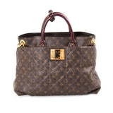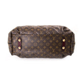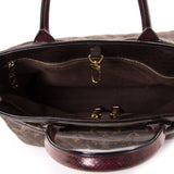 Details: Brown Quilted Monogram Coated Canvas / Gold-Tone Hardware / Snake Skin Rolled Handles and Adjustable Shoulder Strap / Brown Ostrich Leather Accent at Top Line / Exterior Pocket at Front with Tortoiseshell Accented Turn-Lock / Brown Alacantra Lining / Three Zipper Closure Pockets / Clasp Closure at Top