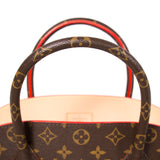 Details: Monogram Coated Canvas Leather On The Front / Dual Toron Rolled Handles / Red Calf-Hair On The Back / Red Edge Dyeing / Studded Outer Front Pocket At Exterior / Central Inner Zipped Pocket In Monogram And Red Calfskin / Flat Red Calfskin Pocket At Inside / Double Smartphone Pocket/ Knotted Leather Ribbons / Protective Studs At Base