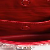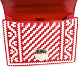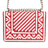 Details: White+Fire Woven Madras-Pattern Lamb Leather / Silver-Tone Hardware / Chain-Link Shoulder Strap With Leather Accent / Red Napa Leather Interior Lining / Single Compartment / Dual Pockets At Wall One With Magnetic Snap Closure / Flap Top With Front Lock Clasp.