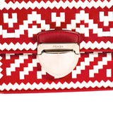 Description: Authentic Prada Woven Madras Pattern Shoulder Bag Bianco+Fuoco