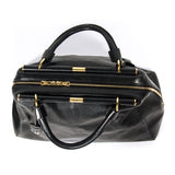 Details: Black Matt Leather / Gold Tone Hardware / Dual Rolled Top Handles / Black Interior Woven Lining / Single Large Compartment With Zip Pocket At Wall And Slit Pocket At Second Wall / Zip Closure At Top / Five Studs At Base