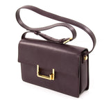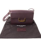 Details: Burgundy Calfskin Leather / Gold-Tone Hardware / Adjustable Shoulder Strap / Suede Interior Lining / Dual Compartments with Flat Pocket / Front Flap with Hook-Clasp Closure