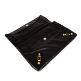 Details: Black Structured Leather / Gold-Tone Hardware / Zipper at Front / Leather Lining / Single Compartment / Flat Pocket / Magnetic Snap Closure