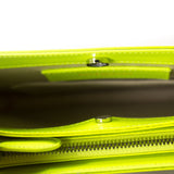 Details: Cotton-Linen Canvas Blend with Neon-Green Leather Trim / Adjustable and Detachable Shoulder Strap / Interior Canvas Lining / Dual Compartments One With Zip Closure / Slit Pocket at Interior / Magnetic Fastening at Top