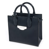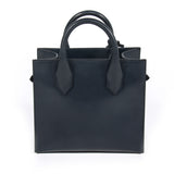 Details: Blue Navy Calf Leather Tote / Dual Top Rolled Handles / Adjustable Removable Shoulder Strap / Marble Print Logo At The Exterior Front / Squared Shape / Buckle Fastening Side Straps / Black Interior Woven Lining / Zip Pocket Inside With Dual Slit Pockets At Interior Wall