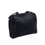 Details: Black Intrecciato Leather / Black Metal Hardware / Long Adjustable Shoulder Strap / Brown Suede Lining / Zipper and Flat Pocket at Interior / Dual-Way Zipper Closure at Top