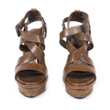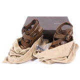 Details: Brown Intrecciato Leather / Intrecciato Trim / Strappy Sandals / Buckle Closure At Ankles