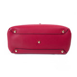 Details: Red Leather / Gold-Tone Hardware / Dual Rolled Handles / Detachable Strap / Protective Studs at Base / Three Compartment, One with Zipper Closure / Black Fabric Interior / Dual Slit Pockets / Zipper Pocket at Inside / Magnetic Snap at Top
