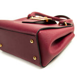 Details: Burgundy Grained Leather / Gold-Tone Hardware / Dual Rolled Handles / Dual Detachable Straps: Long and Short Strap / Protective Studs at Base / One Compartment / Nova Check Fabric Interior / Flat and Zip Pocket / Magnetic Buckle Closure at Front