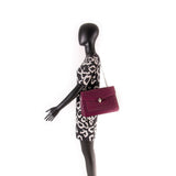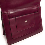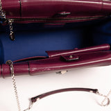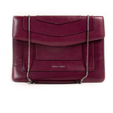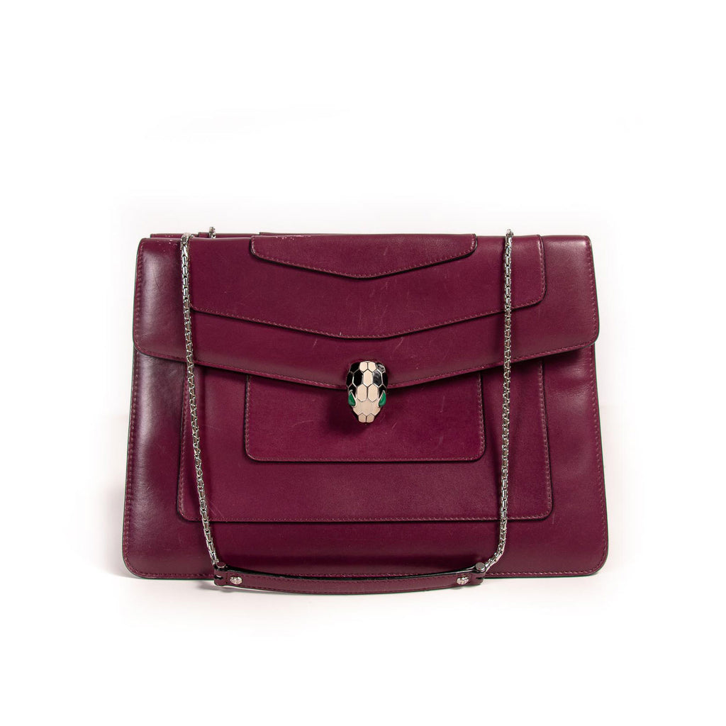 Details: Soft Aubergine Leather / Silver-Tone Hardware / Dual Snake Chain with Leather Pad Straps / Colored Serpenti Head Embellishment / Logo at Back / Blue Woven Lining / One Compartment with 3 Pockets / 2 Exterior Pockets / Clasp Closure at Top