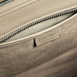 Details: Grey Grained Leather / Silver-Tone Hardware / Dual Rolled Top Handles / Detachable Shoulder Strap / Exterior Small Zip Pocket at Front / Grey Suede Interior Lining / Single Slit Pocket at Interior Wall / Zip Closure at Top