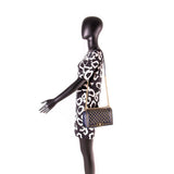 Description: Navy Blue Calf Leather / Gold Hardware / Chain-Link and Leather Shoulder Strap / Single Compartment / Tan Fabric Lining / Single Slit Pocket at Inside / S-Lock Closure at Front Flap / Cannage Embellishment Throughout the Front and Back