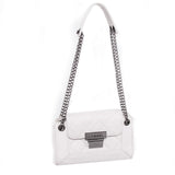 Details: White Caviar Leather / Gunmetal Hardware / Single Shoulder Strap With Double Chain-Link And Leather Accents / Quilted Leather At Flap And Front / Chanel Logo Printed Tonal Woven Interior Lining / Single Compartment With A Flat Pocket / Push-Lock Closure At Front