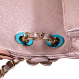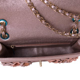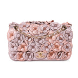 Details: Silver and Rose Gold Sheepskin Leather / Camellia Flower Embellishment Throughout / Gold-Tone Hardware / Slit Pocket at Exterior Back / Interior Leather Lining / Zipper Pocket at Inside / Flap Closure at Top