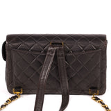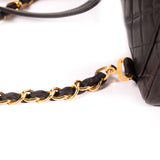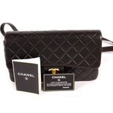 Details: Black Quilted Lambskin Leather / Gold Tone Hardware / Dual Shoulder Straps Featuring Chain-Links / Exterior Flat Pocket At Back / Black Leather Interior Lining / Dual Pockets At Interior Walls, One With Zip Closure / Zip Closure At Inside / Interlocking CC Turn-Lock Flap Closure