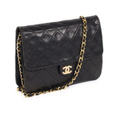 Details: Black Quilted Lambskin Leather / Gold Tone Hardware / Single Chain-Link And Leather Accent Shoulder Strap / Burgundy Leather Interior Lining / Single Zip Pocket At Interior Wall / Flap Closure At Front With Push Lock
