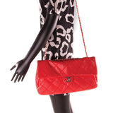 Details: Red Smooth Leather / Silver-Tone Hardware / Chain and Leather Shoulder Strap / Cannage Stitching Throughout / Flat Pocket at Exterior Back / Satin Lining / Dual Compartments, One with Zipper Pocket / Flap Closure with Turn-Lock at Front