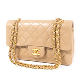 Details: Beige Quilted Lambskin Leather / Gold Tone Hardware / Dual Chain Link And Leather Shoulder Straps / Exterior Pocket At Back / Interior Beige Leather Lining / Zipper Pocket At Front Flap / Dual Interior Compartment / Double Slit Pockets At Interior Wall / Signature Logo Turn Lock At Front Flap