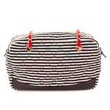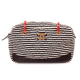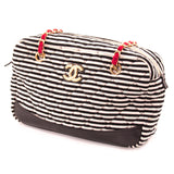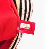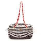 Details: Black and White Canvas with Black Leather Trim / Gold-Tone Hardware / Dual Chain-Link and Red Fabric Shoulder Straps / Logo at Front Face / Red Fabric at Interior with Single Zipper Pocket / Zip Closure at Top